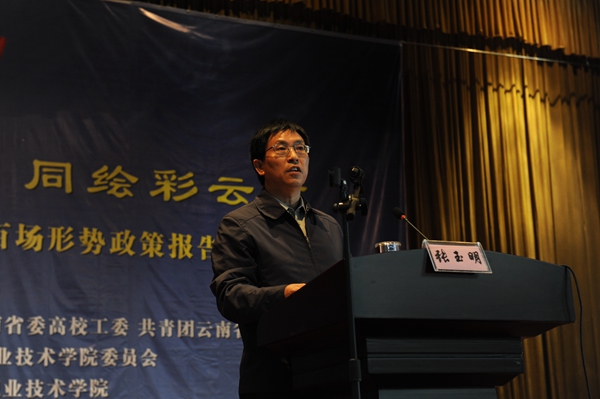 为深入学习贯彻习近平总书记系列重要讲话精神,认真落实省委关于探索创新高校大学生形势政策教育的有效形式,组织开展“共筑中国梦,同绘彩云南”2015年云南省高校百场形势政策报告会的指示要求,10月23日下午,beats365邀请省农业厅党组书记、厅长张玉明同志到学校茭菱校区大礼堂作形势政策专题报告。报告会由学校党委书记崔金赋主持。学校副科以上领导干部、班主任、辅导员,相关部门全体干部职工和部分学生济济一堂聆听了报告。