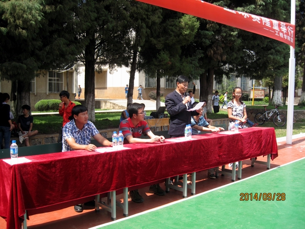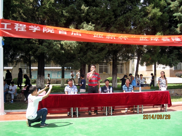 9月28日中午1:00,新成立的工程学院首届“迎新杯”篮球赛在小哨篮球场隆重开幕。参加开幕式的有院长李一源、党总支书记蔡永生,团总支书记蔡东、部分新班班主任,以及全体14级新同学。