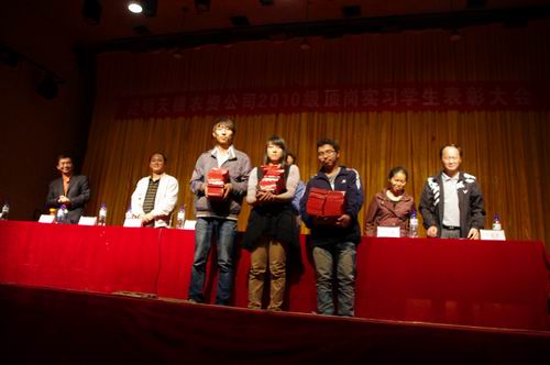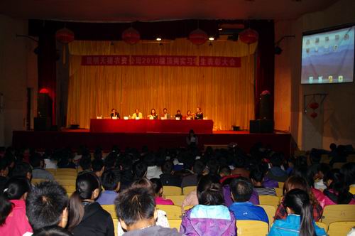 昆明天穗农资有限公司总经理张宏生动汇报了2010级作物生产技术、种子生产与经营专业顶岗实习学生取得的成效;并宣布了获得顶岗实训优秀学生名单,89人同学获得了优秀学生实训证书和奖品。美国陶氏益农公司云南办事处主任李永明先生就学生如何参与顶岗实训,在顶岗实训中锻炼成长发表讲话。云南英茂花卉产业公司马俊仙总经理助理就生物技术及应用专业学生顶岗实训情况进行了总结发言。顶岗实训优秀学生代表——10级作物一班李玲佳发言,还有几个实习学生朗诵了自己的实习日记。