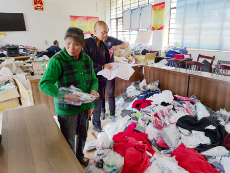 学院挂钩扶贫点大兴乡龚家寨村由学院驻村工作队负责发放。通过乡——村——组逐级通知,从2018年4月12日开始至4月30日止,学院驻村工作队顺利完成了龚家寨村衣物的发放工作。所有衣物发放都详细登记了领取人的基本身份信息,衣物均按质、按量、按规一一发放到村民手中。大兴乡下辖的其他五个行政村也将于2018年4月30日前完成衣物的发放工作。