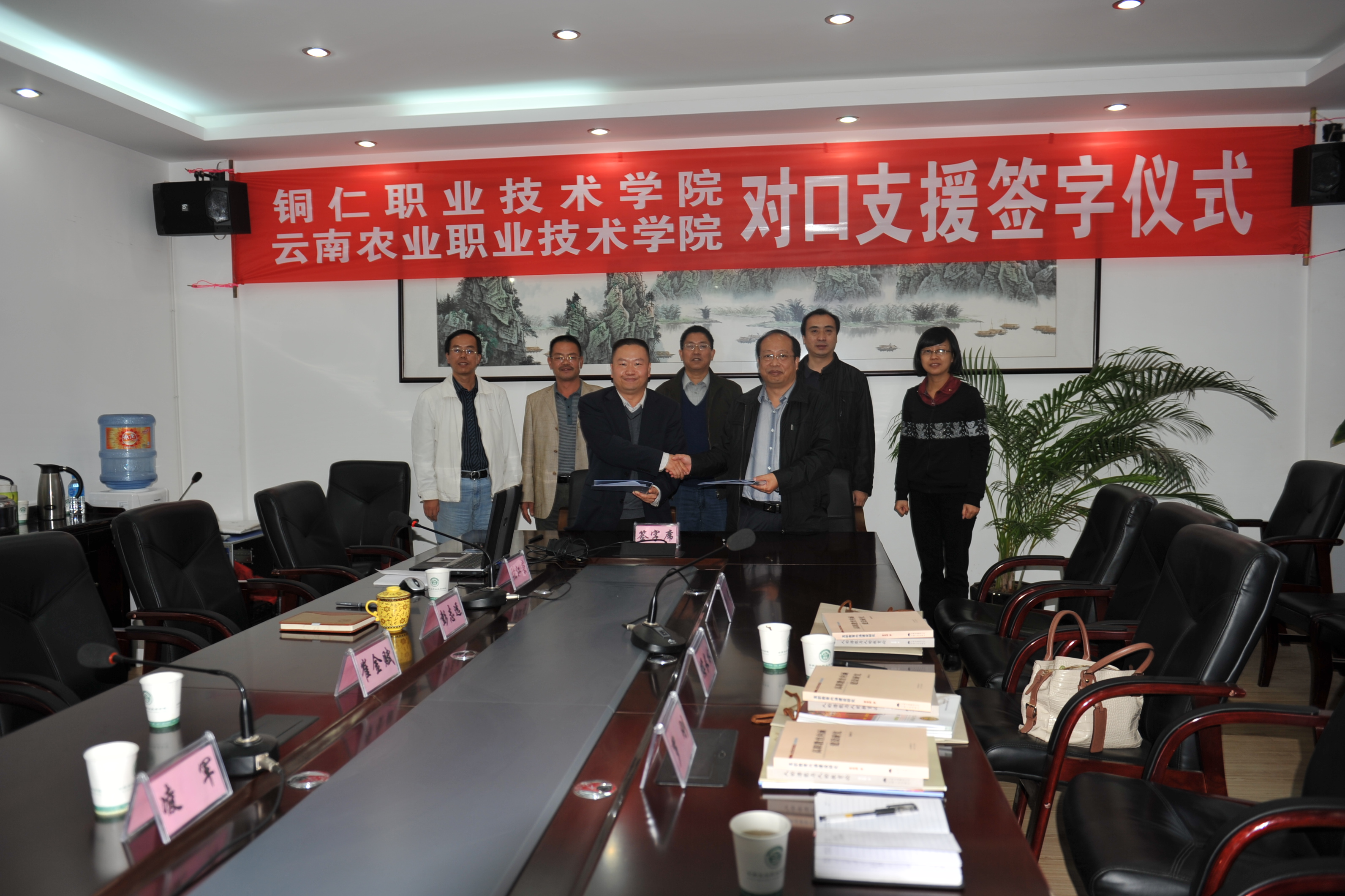 贵州铜仁职业技术学院是教育部高职高专人才培养工作水平评估优秀单位、省级示范性高等职业院校建设单位、国家骨干高职院校首批40所立项建设单位 。通过对口支援和合作办学,贵州铜仁职业技术学院在干部交流、教师培训、联合办学、人才培养模式研究、专业建设、课程改革和实验实训建设等方面给我院以支持和帮助;借助数字化校园网络平台,实现与我院人才培养方案、课程标准、教材、教学课件和学习包等教学资源共享;通过领导层互访交流,开展教学研讨和共同研发课题,在各自具有优势的领域推进优势资源共享,实现优势互补,促进高素质技能型人才培养工作水平的不断提高。