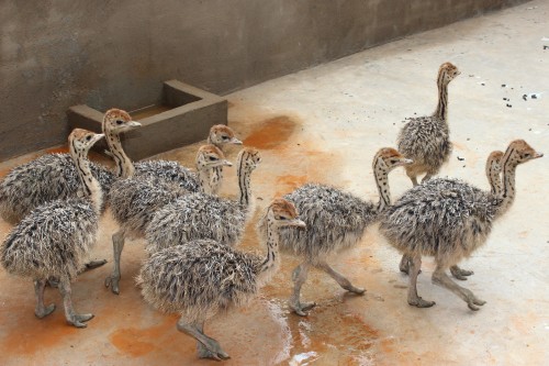 清晨,在鹅鸣狗吠中,腾冲“鸵鸟王”李朝智推开了养鸵鸟的木栅栏,一天新的工作正式开始。李朝智快步穿过“成品鸟”、“青年鸟”两个区域,面色紧张地走向幼鸟区域,所幸48只小鸵鸟安然无事,李朝智放下心来,有条不紊地到饲料房与饲养员一起切草料。
