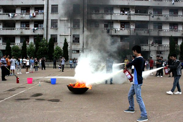经济管理学院学生演练火灾自救