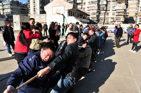 崔金赋书记、彭志远院长出席团拜活动亲自参加拔河赛