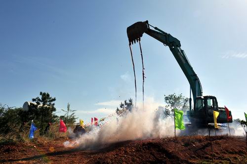 挖掘机铲起第一铲土