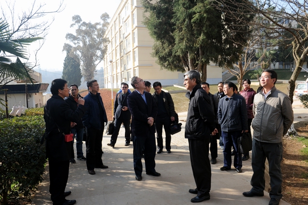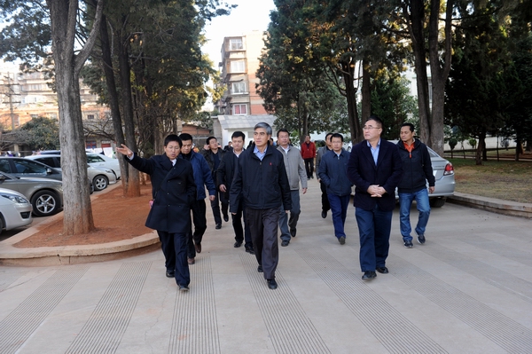 2014年元月8日上午,我院迎来了省委省政府及昆明市有关领导十三人莅临两校区调研学院危房排除及建校选址等事宜。云南省委副秘书长钱恒义、省政府副秘书长普建辉、省发改委副巡视员保卫民、省委高校工委副书记省教育厅副厅长邹平、省国土资源厅总规划师赵乔贵、省农业厅副厅长孙海清、昆明市政府副秘书长市规划局局长尹旭东等十三位领导,学院党委书记崔金赋、院长李永忠、副院长何明东、副院长赵莉、院长助理田应华,以及党院办、基建办、宣传部、教务处、畜牧兽医系、生物工程系、园艺与园林工程系的有关负责人出席调研会。