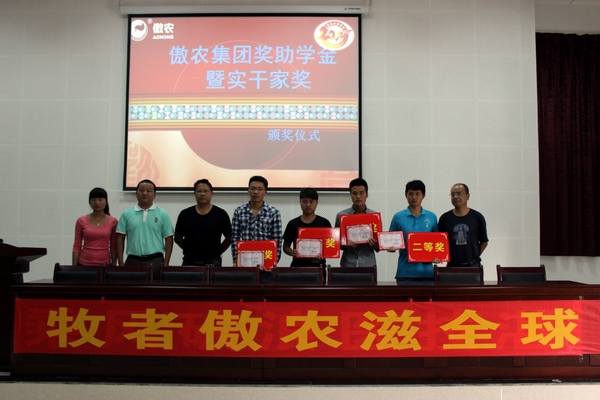 傲农集团是一家以科学化、集约化、商品化和市场化为导向的高科技农牧企业,与畜牧兽医学院在20143月开始校企合作,2014年七月接受10名学生参加生产实训,公司出资两万余元每学期都举行对学生的奖励助学。