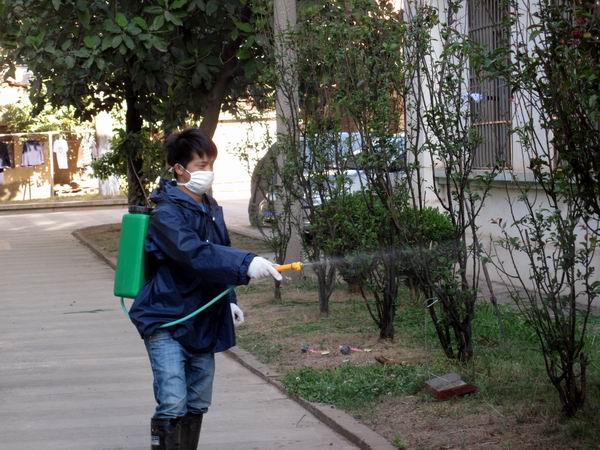 学院为预防禽流感和季节性细菌的滋生蔓延,确保师生的身体健康,为师生提供一个优美、舒适、卫生的学习生活环境,由后勤管理处特地安排专人在校园内进行药物喷洒杀毒、消毒,对卫生死角大扫除等工作。重点对食堂、学生宿舍、办公楼、教学楼、垃圾房等区域的门口和周边进行了杀毒消毒药物喷洒,特别对像垃圾房、污水沟等容易滋生病虫害的场所进行了反复药物喷洒和清除,让细菌、病虫害无处藏身。让我们的校园环境更加美丽,更加和谐。(党委宣传部 供稿)