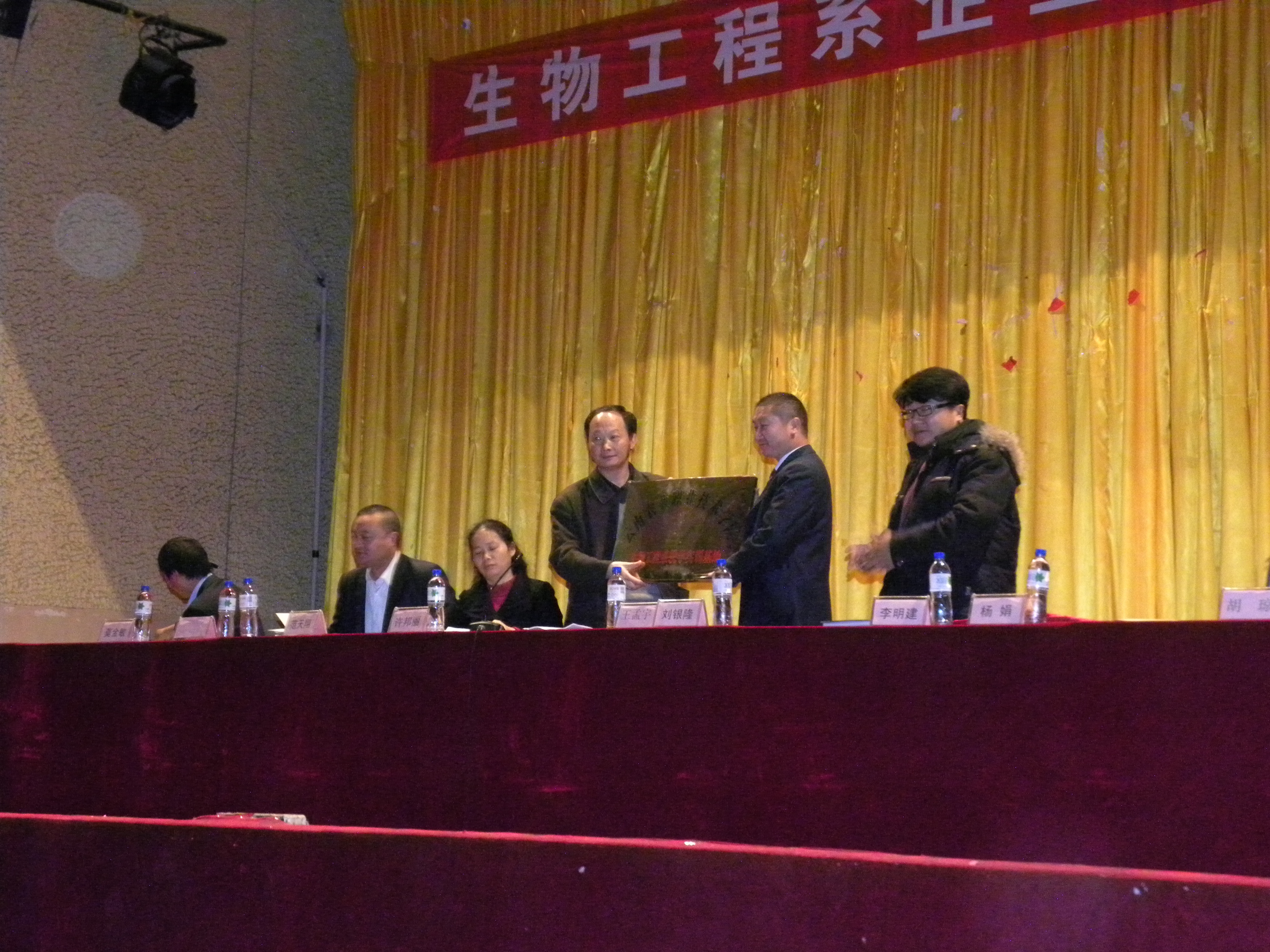 鑫凯高科企业总经理李明建和金实鼎业总经理范天翔分别讲话。两位经理简单简绍了他们企业的基本情况;赞扬生物工程系的学生到公司上手快,具有吃苦耐劳的精神,因而促使两家企业在生物工程系设立“鑫凯之星”和“鼎业之星”奖学金。设立奖学金是对学院学生的充分肯定,希望与生物工程系进一步友好合作。
