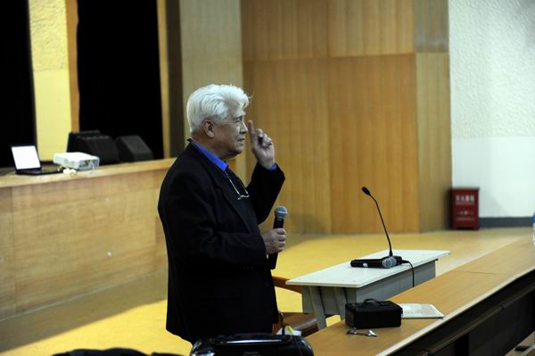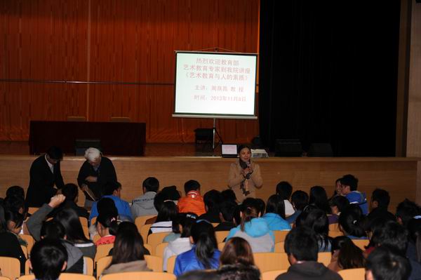 周荫昌教授是我国著名的音乐理论家、教育家。著有《音乐形象的美学特征》、《社会文化生活与青年审美意识》、《音乐艺术赏析》等著作。周教授采用沟通分享式讲座,选用捷克作曲家斯美塔那的经典作品《沃尔塔尔河》引入学生欣赏,由浅入深的从创作背景、作品的动机、发展、变化等引导大家积极思考,同学们各抒已见发表对音乐的见解。两个小时的讲座赢得了同学们阵阵掌声。