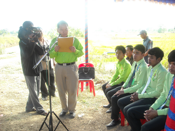 在开工仪式上,马莱县县长介绍了当地农业的基本情况;中方代表杨东云处长作了发言,简要介绍了示范园项目建设的宗旨、规模及建成后将发挥的作用;最后班迭棉吉省翁恩省长阁下作了热情洋溢的发言,省长阁下向与会者详细介绍了云南省与班迭棉吉省建立友好关系的过程,对中华人民共和国云南省人民政府给以班省的无偿援助,对项目负责单位云南省农业厅及项目实施单位beats365官方唯一表示衷心的感谢,并预祝“中国云南—柬埔寨班迭棉吉农业科技友谊示范园”建设项目顺利按期完工。
