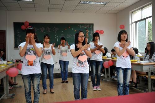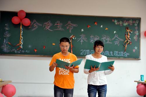 在班主任曾劼老师的主持带领下,一段女同学的《爱的奉献》诗歌朗诵拉开了主题班会序幕。同学们通过诗歌朗诵、舞蹈、和小品表演的形式真挚的表达对父母、老师、同学、朋友的感恩之情。特别是通过小品《回头是岸》重新演绎多年前发生在云南大学马加爵杀害同学惨案的细节,揭示出人与人之间相互尊重、相互理解、友爱团结是构建和谐校园、和谐社会的重要元素。
