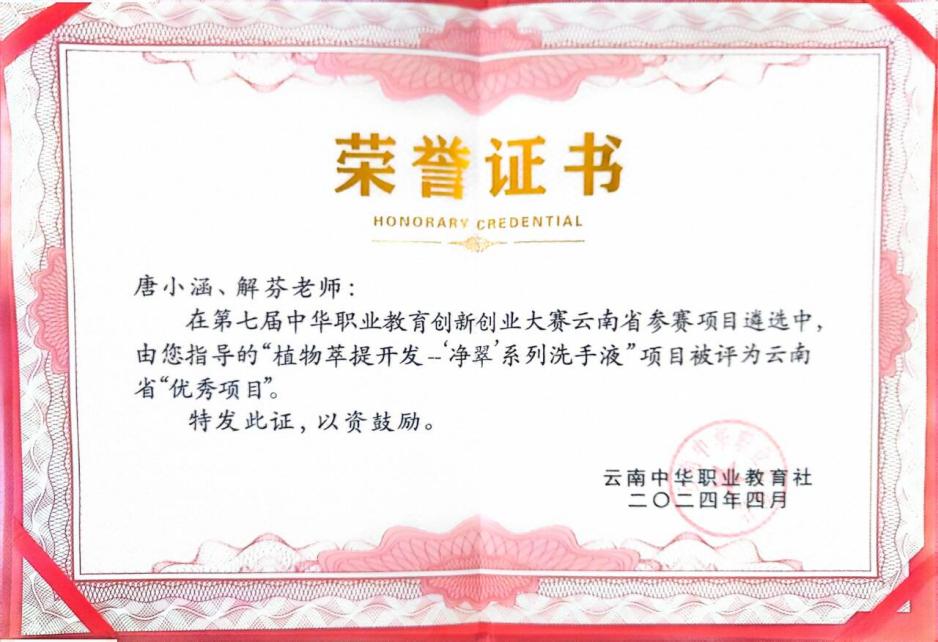 通知中心根据云南中华职业教育社文件《关于请各院校积极组织参加第七届中华职业教育创新创业大赛的通知》(云社[2024]15号)要求,食品药品与大健康学院积极组织师生报名参赛,经过激烈角逐,“植物萃提开发——‘净翠’系列洗手液”项目被评为云南省“优秀项目”奖,beats365被授予“优秀组织单位”荣誉。