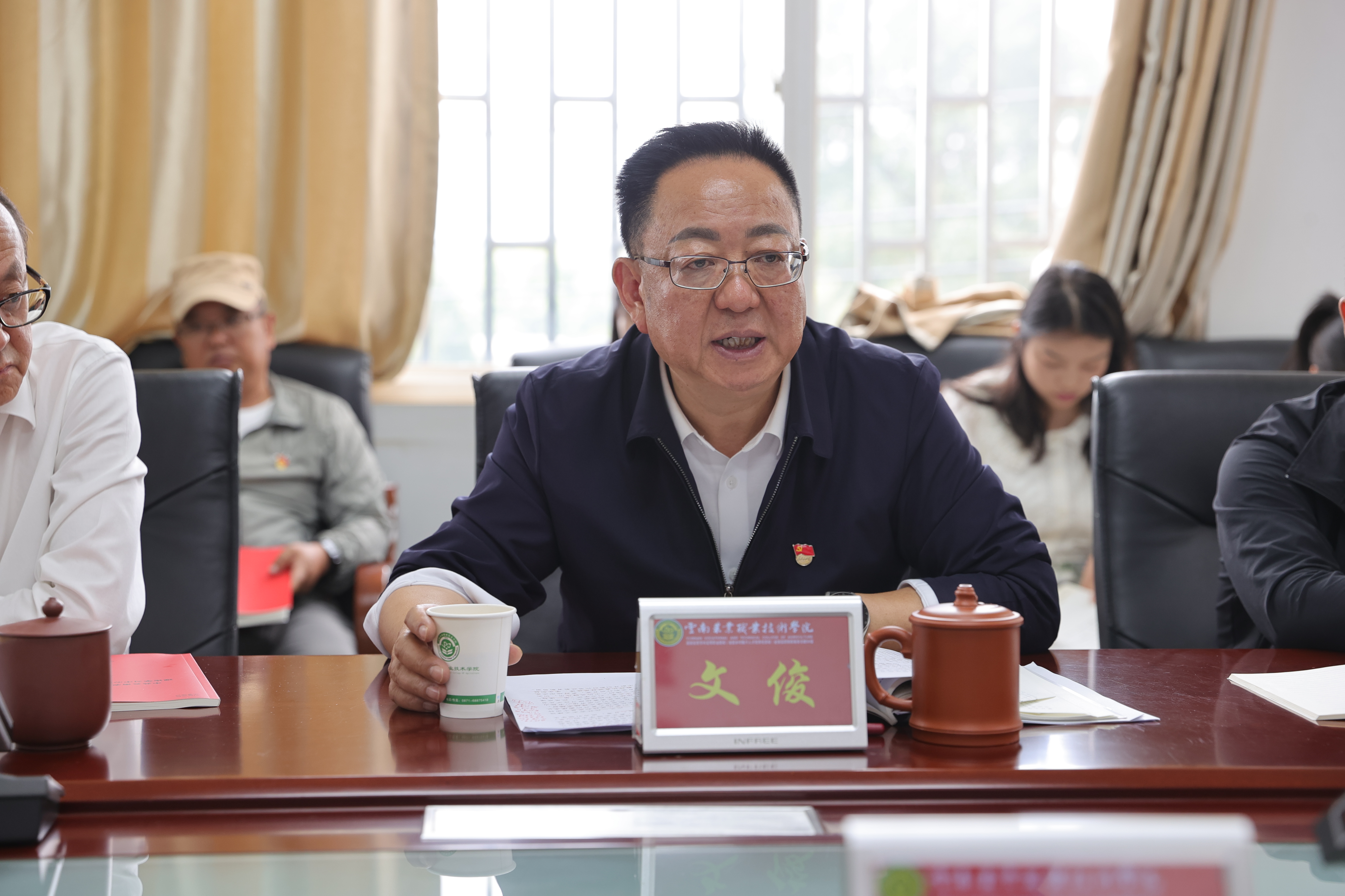 会上,文俊书记以《学习贯彻习近平总书记对学校思政课建设重要指示 不断开创新时代思政教育新局面》为题作重点交流发言,他谈了三个方面的学习体会。一是要切实扛牢政治责任,同步推进思政课建设与党的创新理论武装。思政课建设是党领导教育工作的重中之重,学院党委历来高度重视,坚持不懈用习近平新时代中国特色社会主义思想铸魂育人,推动思政课内涵式高质量发展;二是要充分认识学习贯彻习近平总书记对学校思政课建设重要指示精神的重要意义,努力打造思政“金课”。全院党员干部和教师特别是马克思主义学院教师要深入学习领会,充分挖掘学院百廿校史中的红色元素,贴近学生、因材施教,让学生爱听爱学、听懂学会;三是要加强思政课教师队伍建设,努力打造思政“金师”,思政课是落实立德树人根本任务的关键课程,大学生正处于人生的“拔节孕穗期”,思政课不可替代,思政教师责任重大,要引导同学们走正路,扣好人生第一粒扣子,努力培养更多让党放心、爱国奉献、知农爱农、担当民族复兴重任的时代新人。