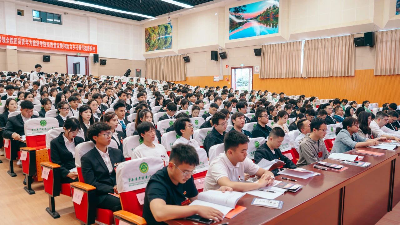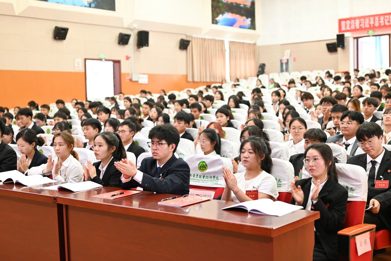 学院党委文俊书记表示本次团代会是全校广大团员青年政治生活中的一件大事,他代表学院党委向大会的召开表示热烈祝贺,向长期以来重视和支持我院青年工作的上级团组织、兄弟院校团委、各位来宾表示衷心感谢,向出席大会的全体代表以及全院团员青年致以亲切问候和美好祝愿。同时他要求全院各级团组织以及全院团员始终牢记习近平总书记的殷切期待,不负党的期盼,勉励全院广大团员和青年,为推进学院高质量发展和助力乡村振兴挺膺担当!为奋力书写中国式现代化的青春篇章挺膺担当!