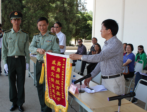 表演结束后,2011级应用泰语班的杨钊同学代表全体参训学员发言。随后,何明东副院长宣读了表彰决定,表彰了军训成绩突出的优秀学员。领导们为学员代表颁发了合格证书和荣誉证书。接下来,崔书记代表学院向昆明民族干部学院赠送锦旗,感谢昆明民族干部学院对学院军训工作的大力支持。