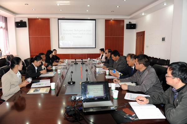 对外交流与合作处处长凌军、基础部李憬副主任就两校合作的具体事宜与南邦国际技术大学访问团进行了商洽,并达成了初步的合作意向协议。
