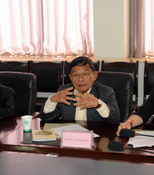 泰王国南邦国际技术大学(LIT)MR.NIMIT JIVASANTIKARN董事长代表南邦国际技术大学致辞,感谢学院热情友好的接待,非常赞同何副院长的讲话,朋友多了路好走,道路会越走越宽、越来越顺!他盛赞中国在东南亚的巨大作用;盛赞中国的经济快速发展给泰国等国家带来了发展的机会;赞扬中泰两国的传统友谊深厚。董事长强调泰国要向中国学习,要加强文化教育的交流合作。希望与我院交流合作,促进共同发展。MR.NIMIT JIVASANTIKARN董事长介绍了南邦国际技术大学的办学历史、开办专业、学校规模、办学思路、办学特色,以及国际交流等;同时,欢迎我院师生到泰国旅游观光、欢迎到南邦国际技术大学访问做客!