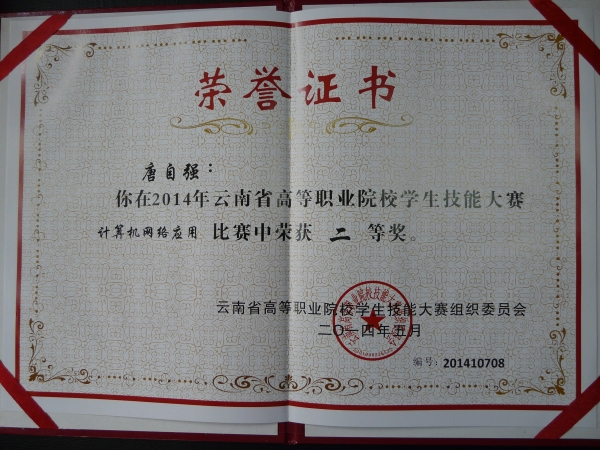 在云南民族大学职业技术学院(呈贡校区)分赛区,由张丁月、董绚、曾劼为指导老师,文秘专业的参赛学生在文秘专业技能大赛中荣获“个人三等奖”;由杨锐老师和崔庆雄老师带队,玉冰、周宏兴老师指导的六名计算机专业的同学在计算机网络应用技能大赛中分别荣获省赛“二等奖”和“三等奖”;在昆明冶金高等专科学校企业经济管理沙盘比赛现场,由郭正蓉、梁盈、徐开宏为指导老师,八名参赛学员进行了一场激烈比赛,最终荣获省级大赛“三等奖”。由毛伟芳、蔡明杰老师指导的市场营销四名参赛学员也表现不俗。