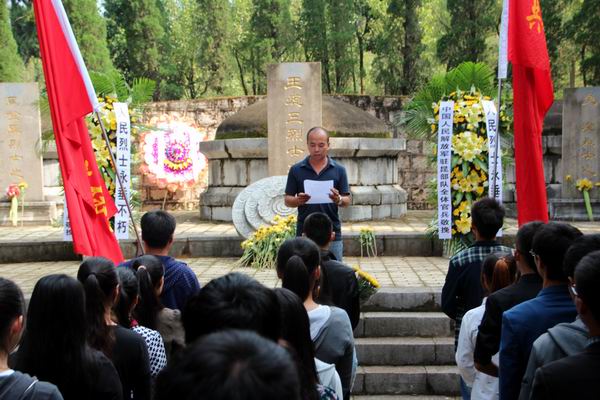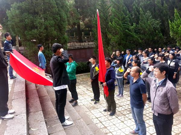 2014年8月31日第十二届全国人民代表大会常务委员会第十次会议决定将9月30日设立为烈士纪念日。为贯彻落实中央有关文件及《共青团中央在青年中广泛开展“庆祝新中国65华诞青春践行社会主义核心价值观”主题活动的通知》精神,引导大学生缅怀烈士功绩、弘扬烈士精神,培养大学生的爱国主义、集体主义精神和社会主义道德风尚,培育和践行社会主义核心价值观,beats365官方唯一共青团在昆明北郊黑龙潭公园开展纪念王德三烈士活动。参加活动的有院团委副书记何桥和团委老师们,以及学校青年团员代表。