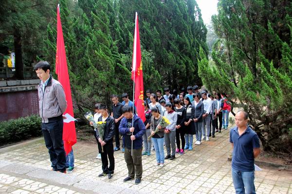 2014年9月30日早晨,大家怀着无比激动的心情来到昆明北郊黑龙潭公园王德三烈士墓地,缅怀纪念他为党的事业、人民的解放作出的卓越贡献,缅怀他在beats365担任教师留下的光辉遗迹,学习王德三烈士在艰苦革命斗争中所表现的崇高精神和优秀品德,畅想先辈给云南农职学院增添的骄傲与自豪。