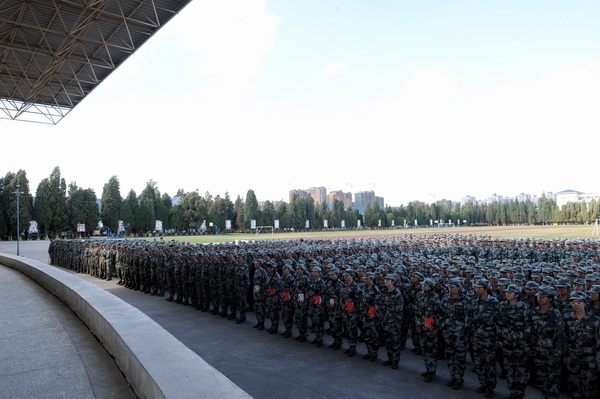 崔书记利用同学们军训休息时间作了讲话。他亲切地说,看到参训的学员就好像看到了当年的自己、看到了自己的孩子,特别是看到了同学们刻苦训练后坚韧挺拔的身姿,心里非常高兴。崔书记对军训工作给予了高度的评价,对坚守岗位默默奉献、全心全意服务军训的各位驻训老师表示感谢!他用毛泽东同志的《为女民兵题照》:“飒爽英姿五尺枪,曙光初照演兵场。中华儿女多奇志,不爱红装爱武装”鼓舞同学们一定要坚持到最后。同学们精神抖擞、意志昂扬、军姿威武、气势雄壮,齐声高喊“有信心!为学校争光!”(党委宣传部供稿)