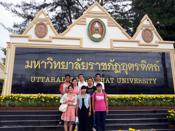 我院首批2011级泰语专业25名学生在基础部董玉洲主任、泰语教研室高绍满老师的带领下,分别于7月26日、8月4日踏上了赴泰留学的征程,他们将在泰国博仁大学和程逸皇家大学进行为期一年的学习和生活。