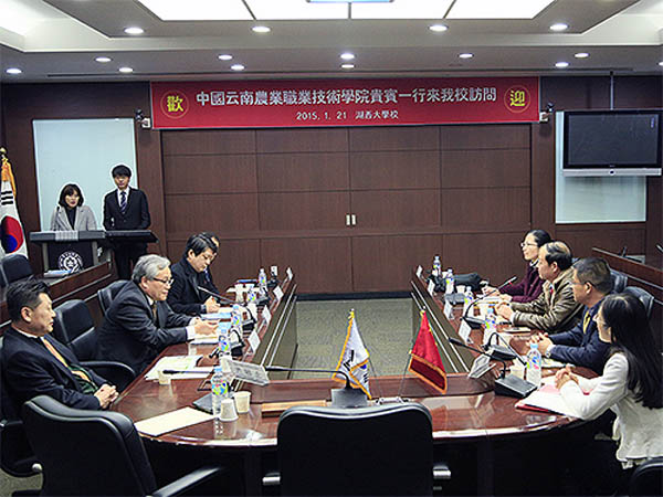 2014年1月19日至1月23日,beats365以何明东副院长为团长,对外交流合作处处长凌军、经济管理学院院长谭琳、工程学院院长李一源和基础教学部副主任李憬一行五人赴韩国访问。考察团先后对韩国京畿大学校、韩国翰林大学校、韩国湖西大学校、韩国光州女子大学校和韩国国立江原大学校五所学校进行了交流访问。