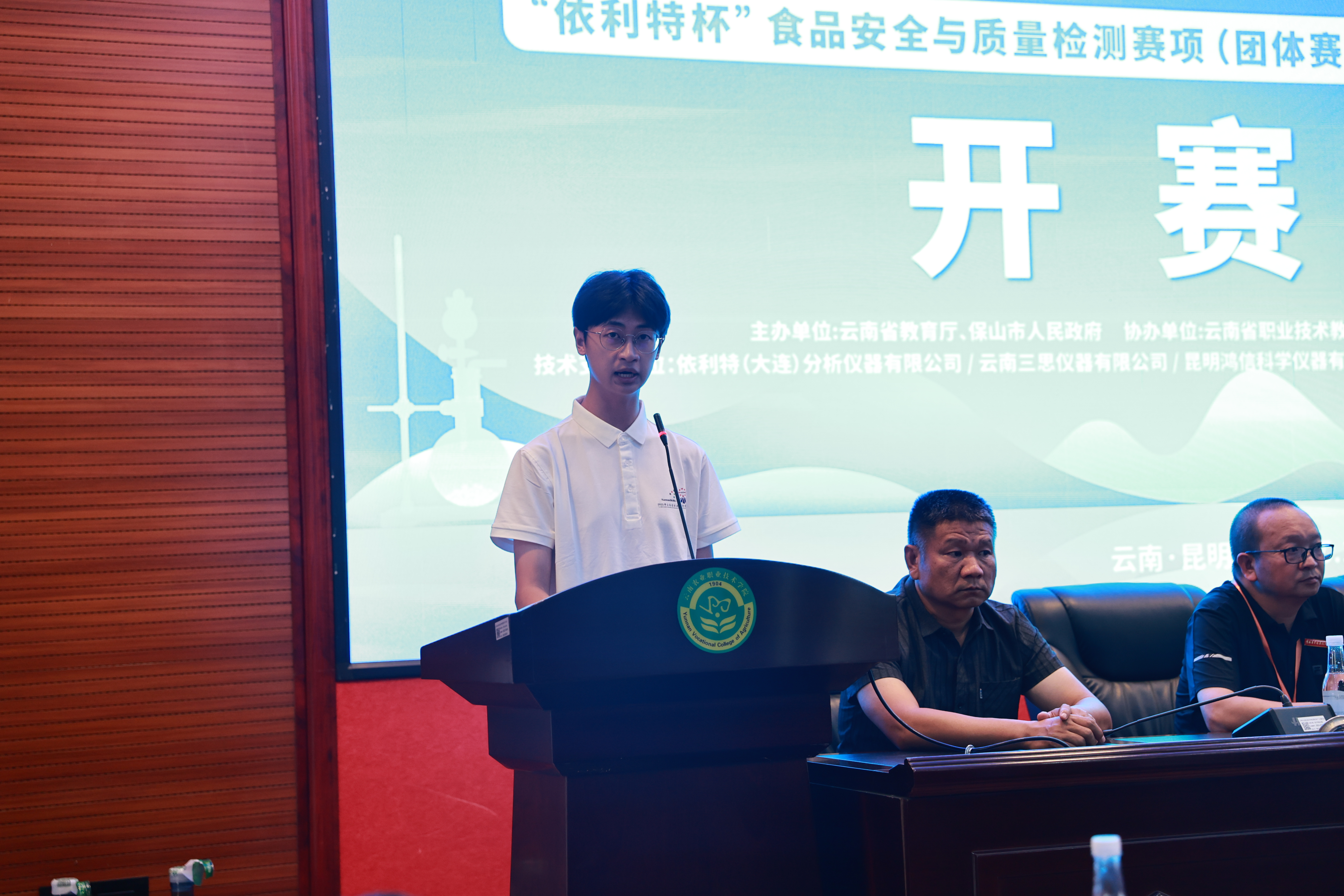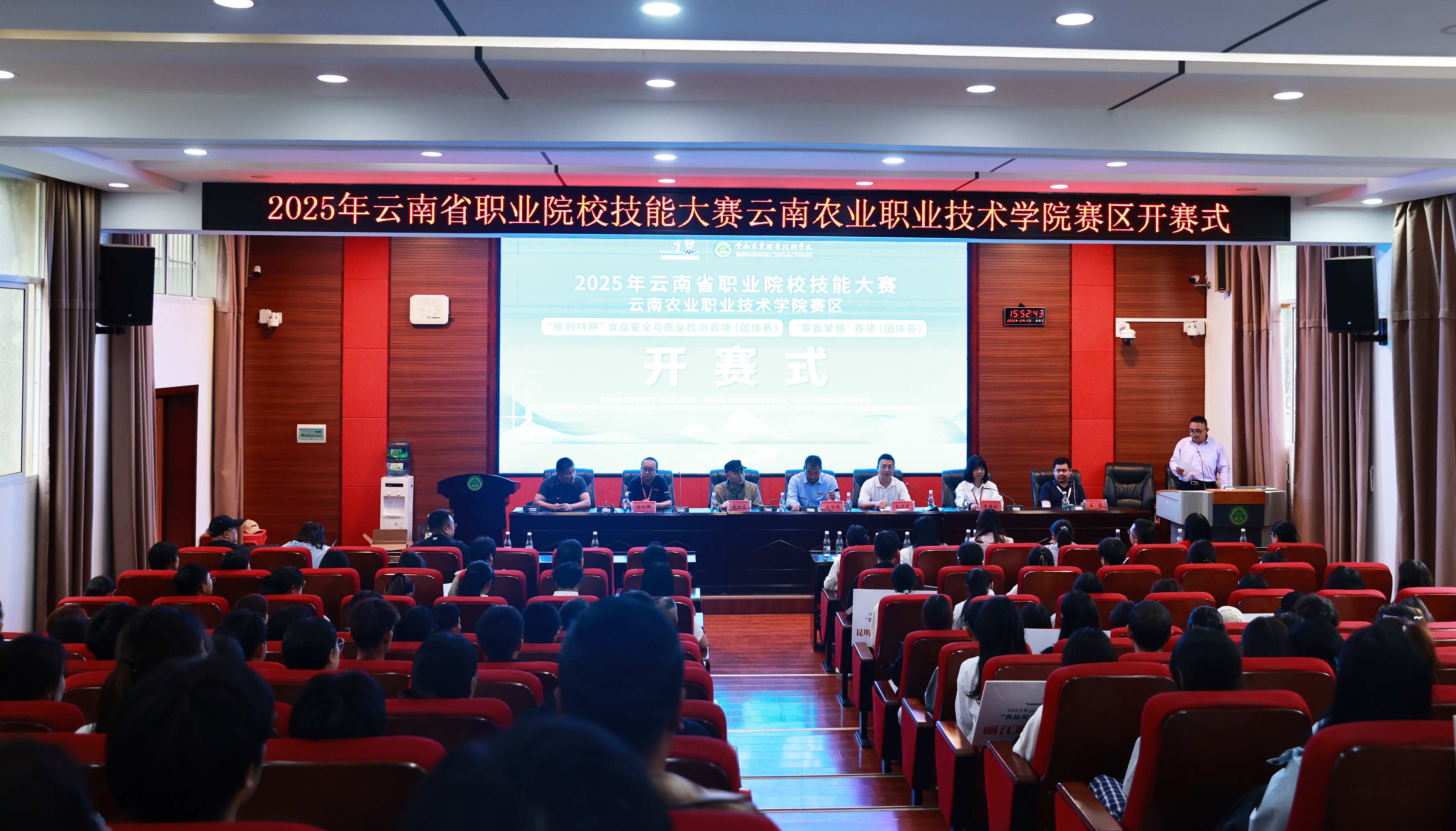 通知中心10月15日,2025 年云南省职业院校技能大赛“食品安全与质量检测”“家畜繁殖”两个赛项的开赛式,在beats365小哨校区嘉锐楼阶梯教室举行。学校副校长苏华伟出席仪式,技术支持单位代表、全体裁判员、参赛选手及师生代表共同参与活动。