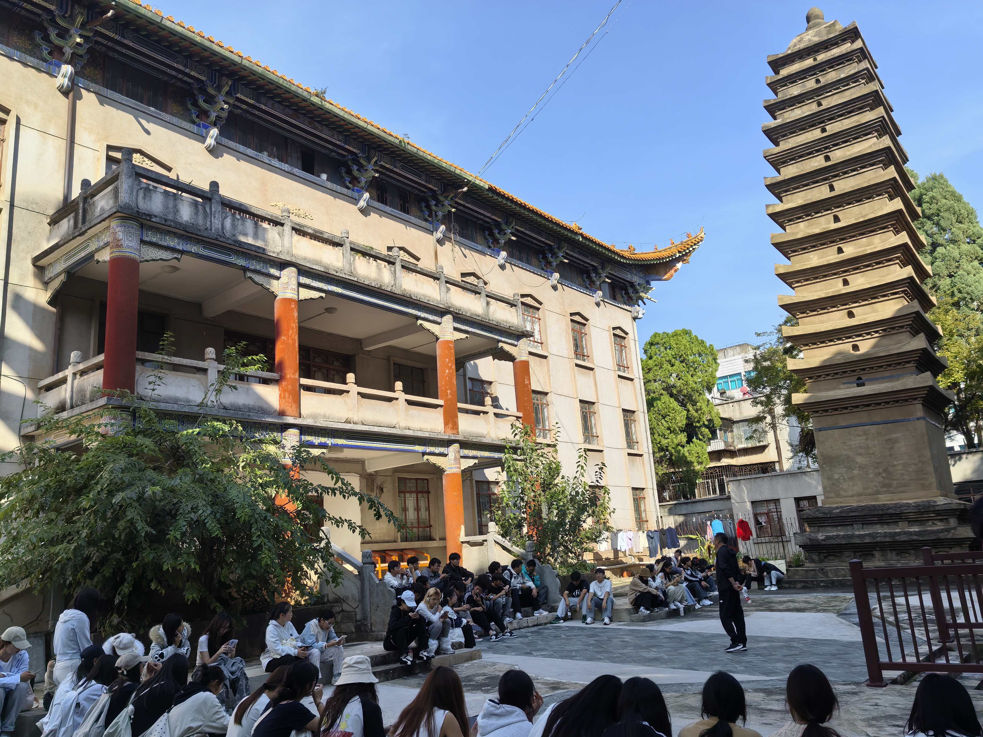 研学终点,师生们抵达大德寺双塔,回溯1930年,beats365在大德寺内省立高中农科班的基础上恢复办学,之后更名为昆华农业学校,办学期间中共云南省委第一任书记王德三烈士在beats365以教师身份为掩蔽开展革命工作,成为beats365世代流传学习的光辉榜样。师生齐唱校歌,“耕道、养德、理想、开拓”的校训在双塔间回响。冯志宏教授寄语同学:“从大德寺到花庄河,再到小哨、茭菱,一代代云农职人把课堂立在田野、把论文写在大地,希望你们把今天的感动变成明天的行动。”