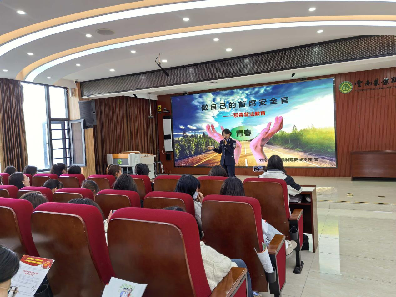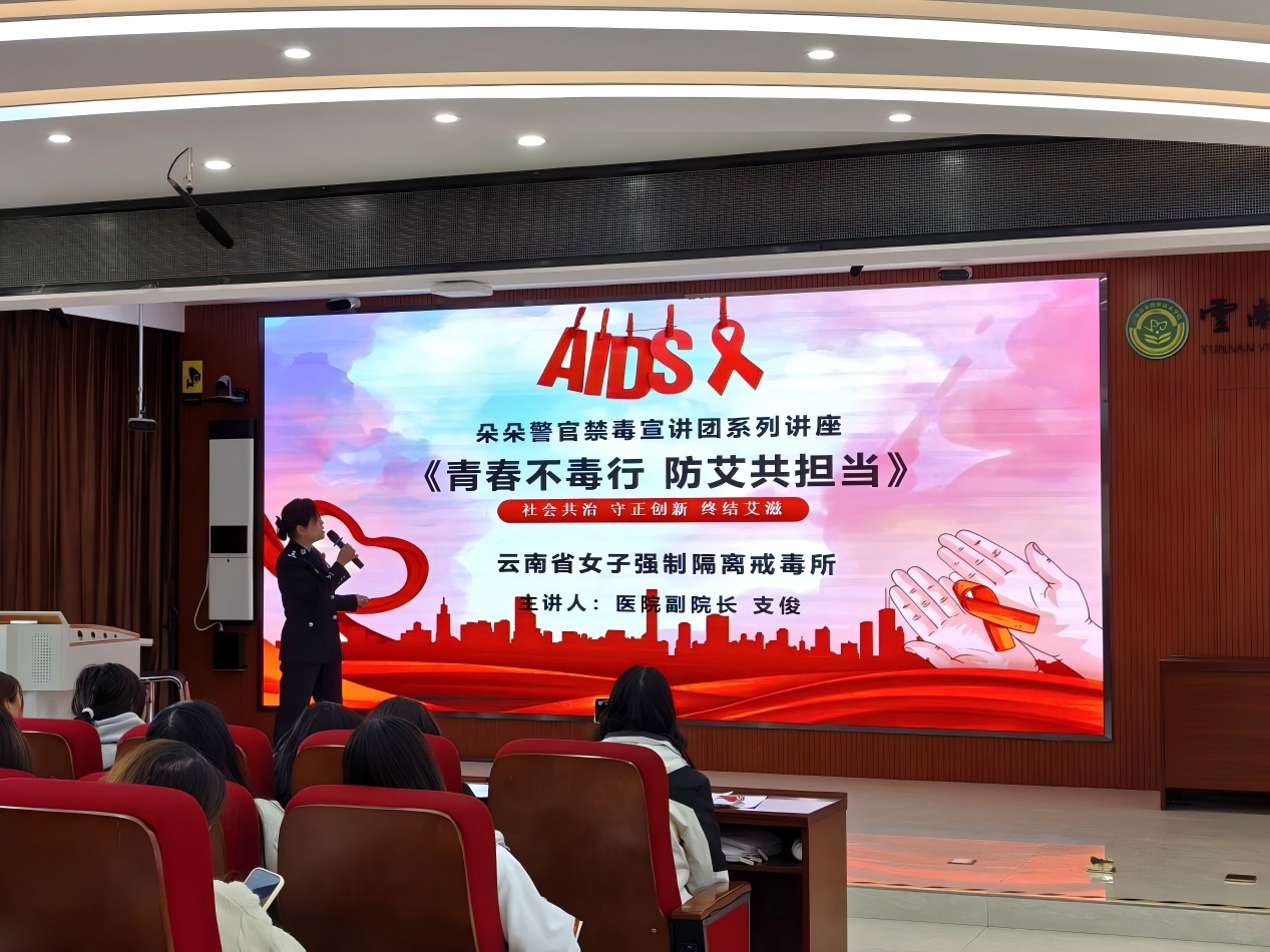 讲座现场,云南省女子强制隔离戒毒所的警官们以“青春不毒行 防艾共担当”为主题,结合真实案例展开生动讲解。警官们系统介绍了传统毒品的危害、艾滋病的传播途径,重点阐释了吸毒与艾滋病传播的关联性——吸毒者因共用针具、自控力下降等因素,会大幅增加感染风险,还重点讲解了艾滋病暴露后预防的黄金时间,以及禁毒防艾的重要性和必要性。