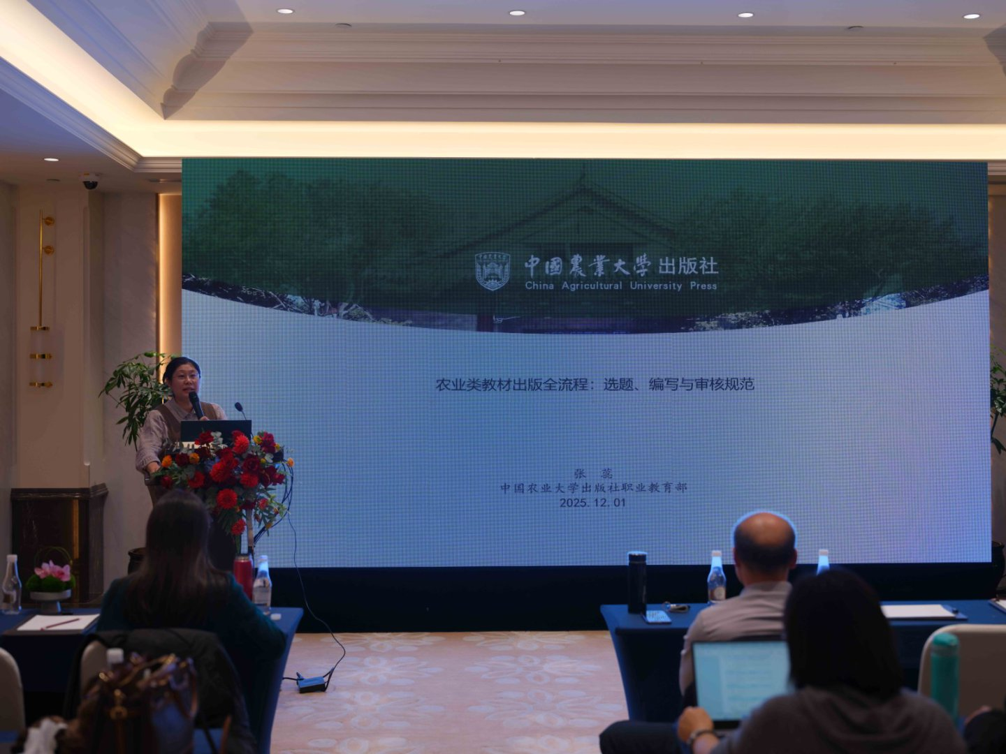 为推动学校现代农业技术高水平专业群教材建设,宋志伟名师工作室与中国农业大学出版社在本次会议上联合举办分论坛,由农学与园艺技术学院院长杨净云主持,宋志伟教授作题为《产教融合引领驱动下特色新形态教材开发探索》的报告。中国农业大学出版社数字出版中心主任吕建忠作题为《学科赋能・数字重构:农业类数字教材建设的探索与实践》的报告。中国农业大学出版社职业教育事业部主任张蕊作题为《农业类教材出版全流程:选题、编写与审核规范》的报告等。
