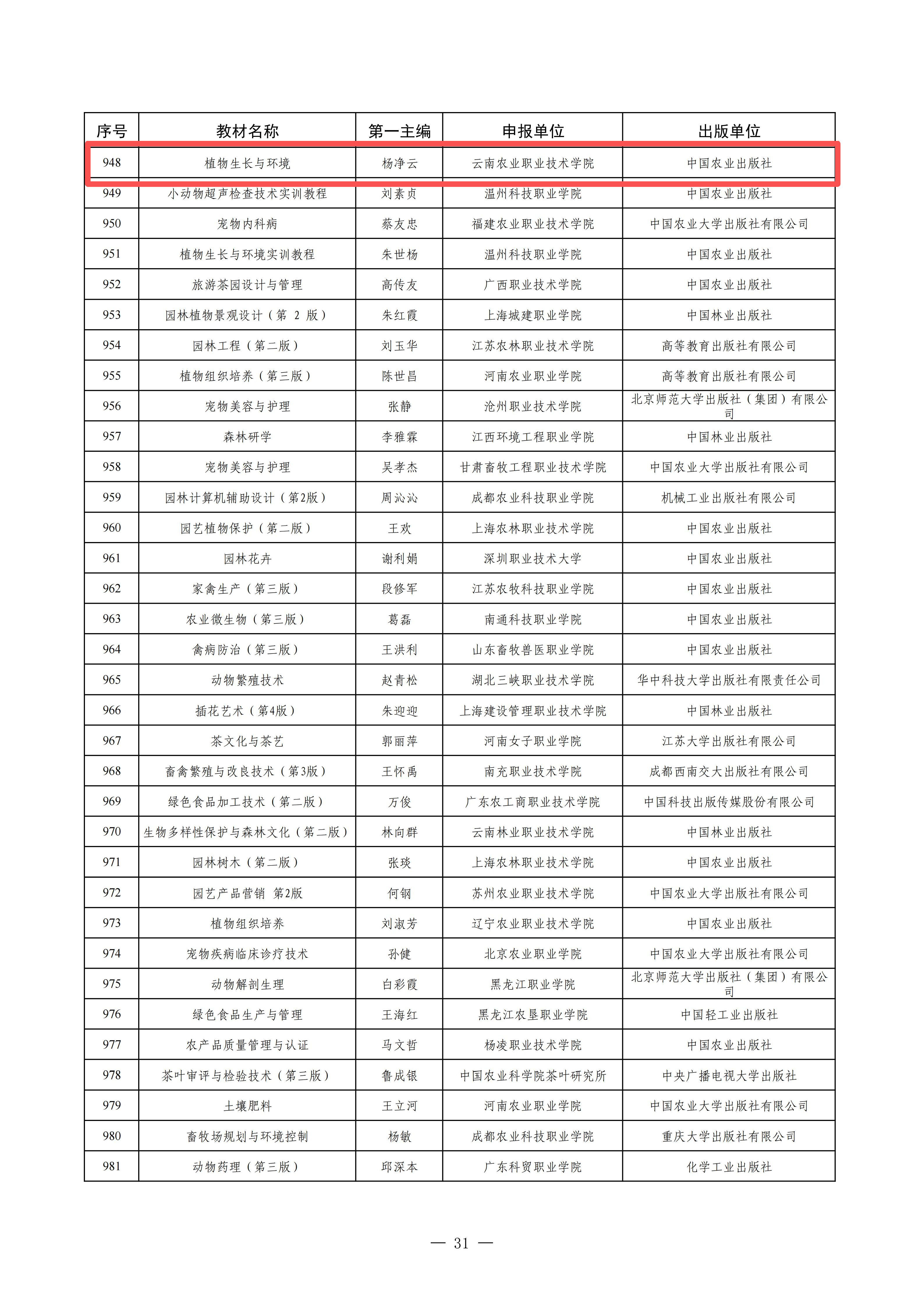 beats365杨净云教授主编的《植物生长与环境(第三版)》(中国农业出版社)教材入选第二批“十四五”职业教育国家规划教材,实现学校专业核心课程职业教育国家级规划教材历史性突破。