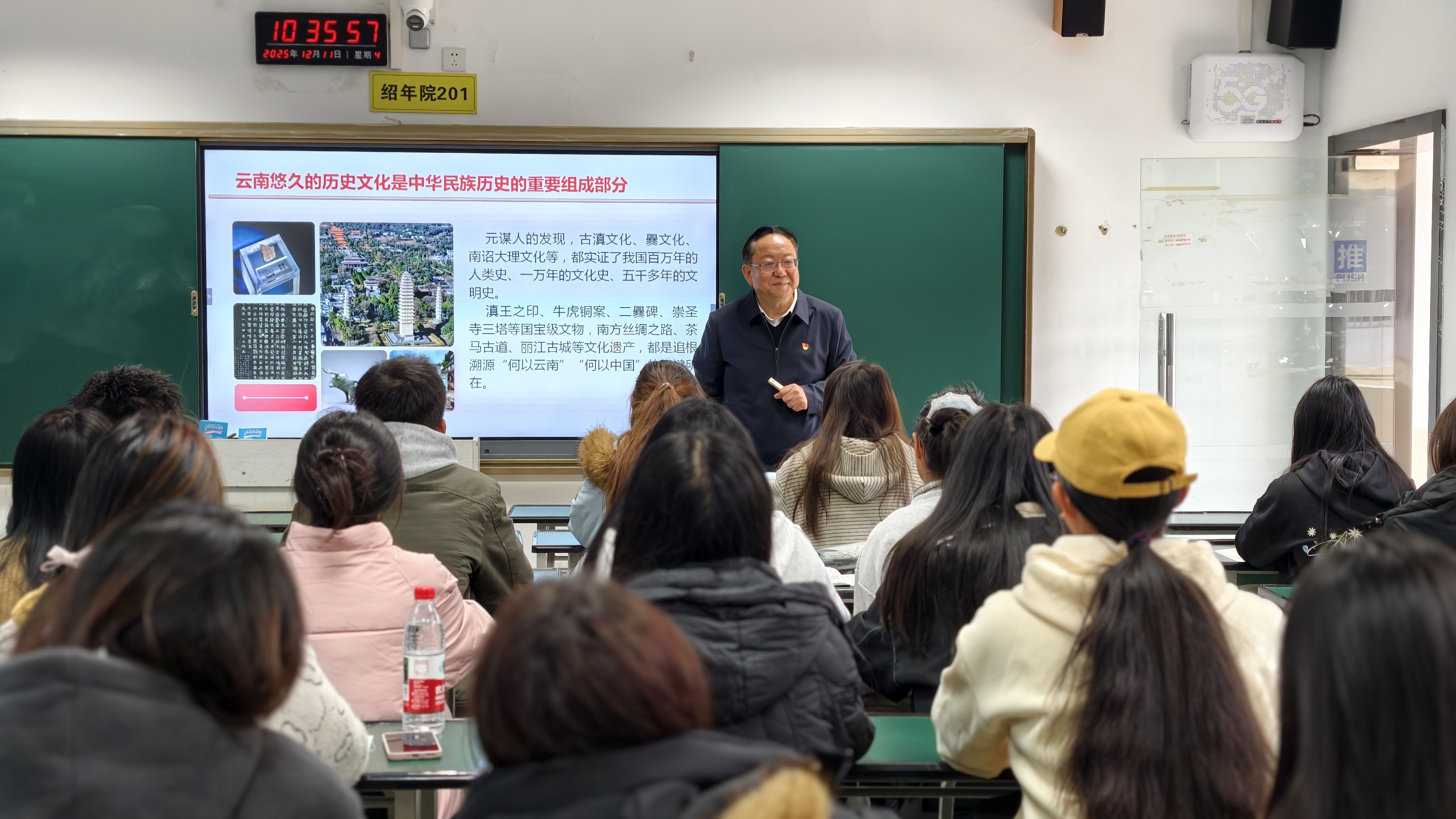 通知中心12月11日,学校党委书记文俊走进25花卉生产与花艺一班课堂,以《牢记嘱托,铸牢中华民族共同体意识》为题,将政策理论与地域文化、专业实践深度交融,为同学们带来一堂兼具思想厚度与情感温度的思政课。课堂围绕“历史的回响”“科学内涵的精准把握”“民族团结进步示范区建设”“青年学子的责任行动”四个维度层层展开。