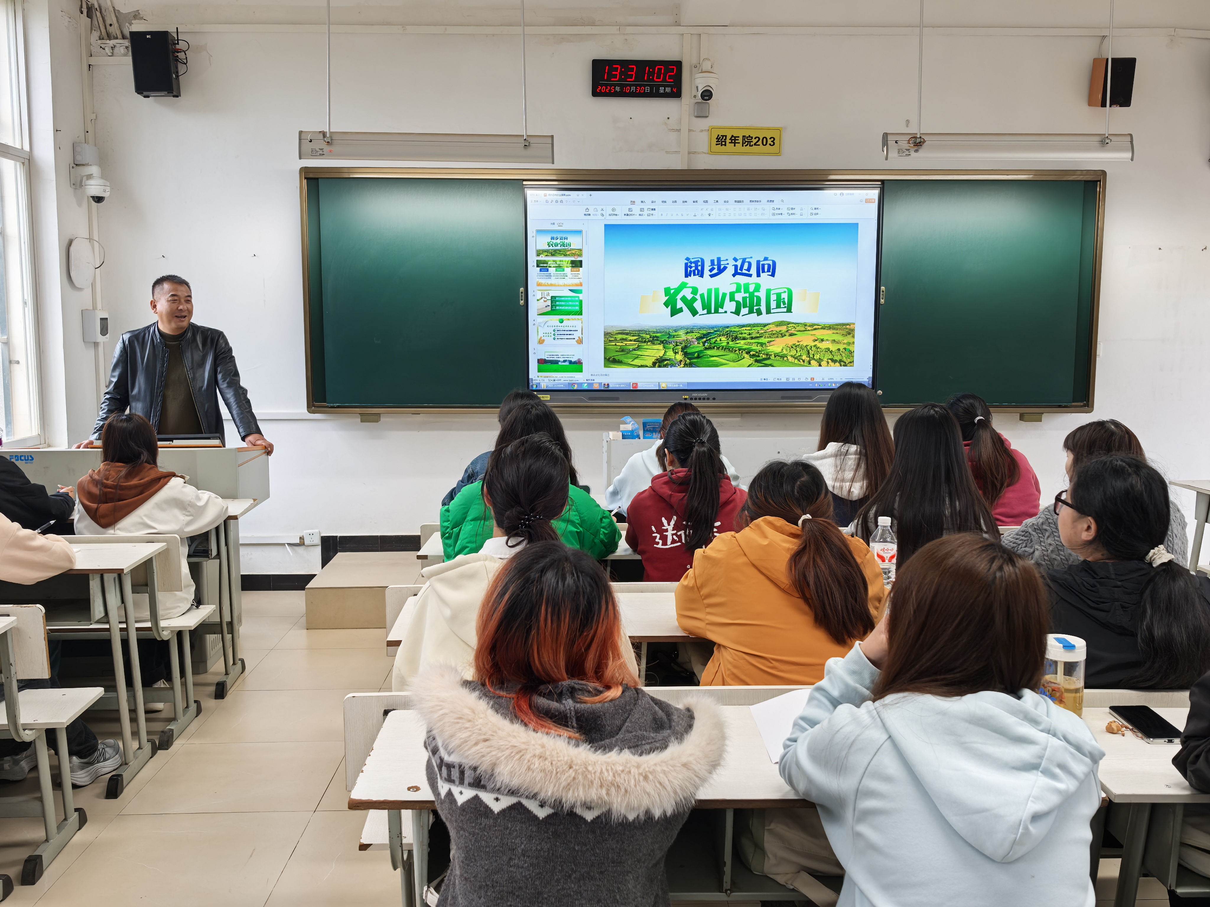 党委副书记孙继先,纪委书记、监察专员柳勇以《纪念抗战胜利 坚定民族信念》为主题,分别为25现代农业技术二班、24工程测量技术二班同学授课,带领学生重温抗战历史,进一步坚定民族自信与爱国信念;副校长杨涛、姚廷超、苏华伟则共同围绕《阔步迈向农业强国》主题,分别为24畜牧兽医四班、22 畜牧兽医七班(五年制)、24食品检验检测技术一班同学解读农业强国建设的战略意义与发展路径,明确青年学子在农业领域的责任与担当;副校长盛冀萍以《决胜 “十四五” 奋进向前行》为题,为25畜牧兽医五班学子深入分析“十四五” 时期的发展机遇与挑战,引导学生将个人发展与国家战略紧密结合。
