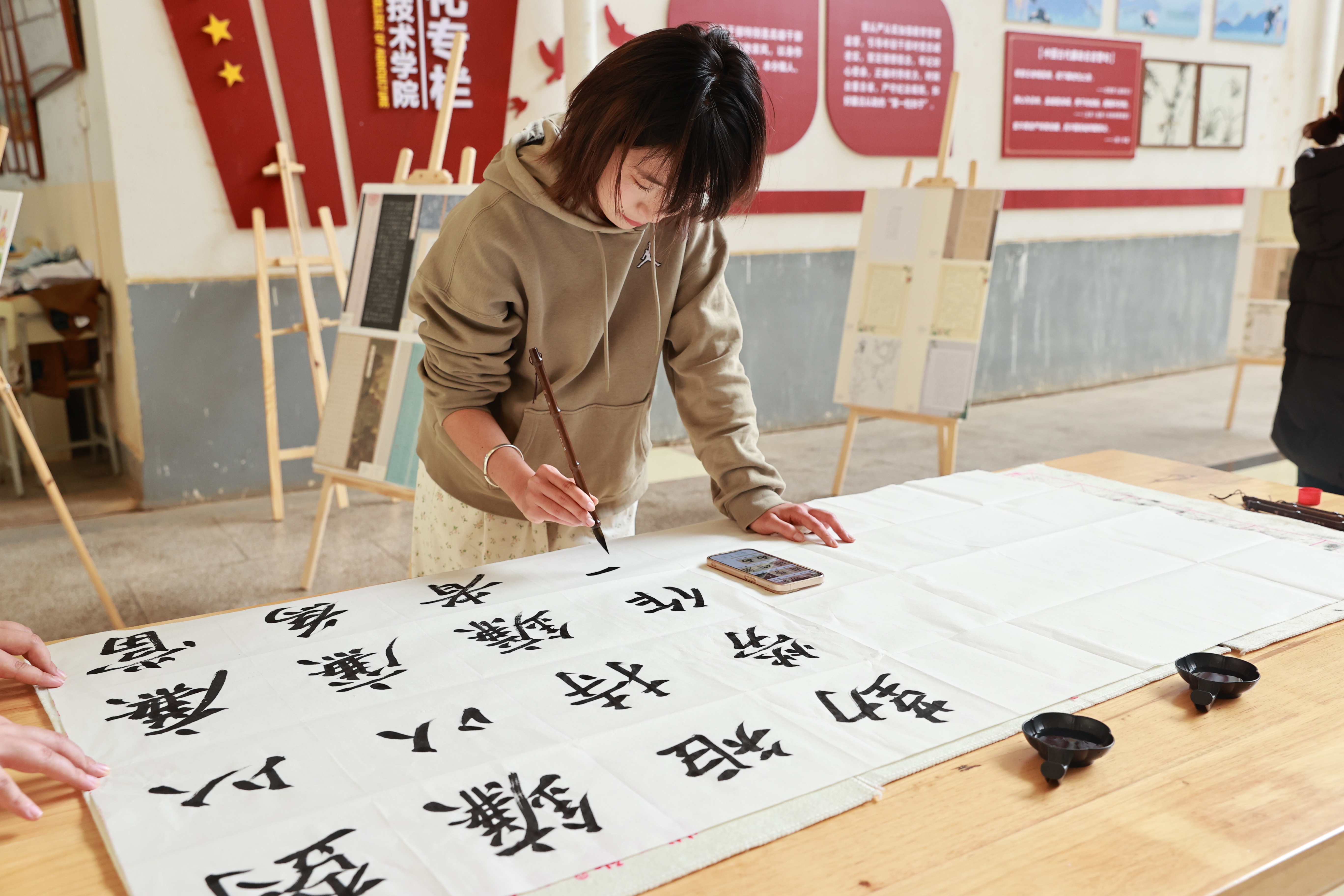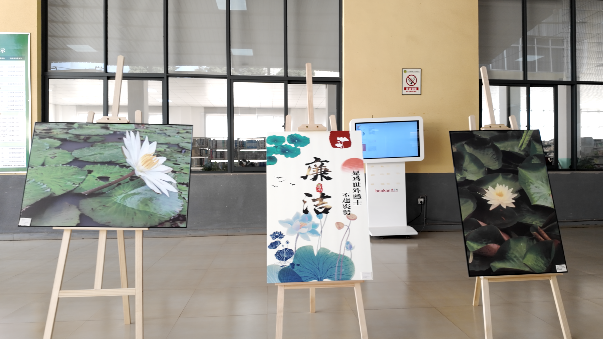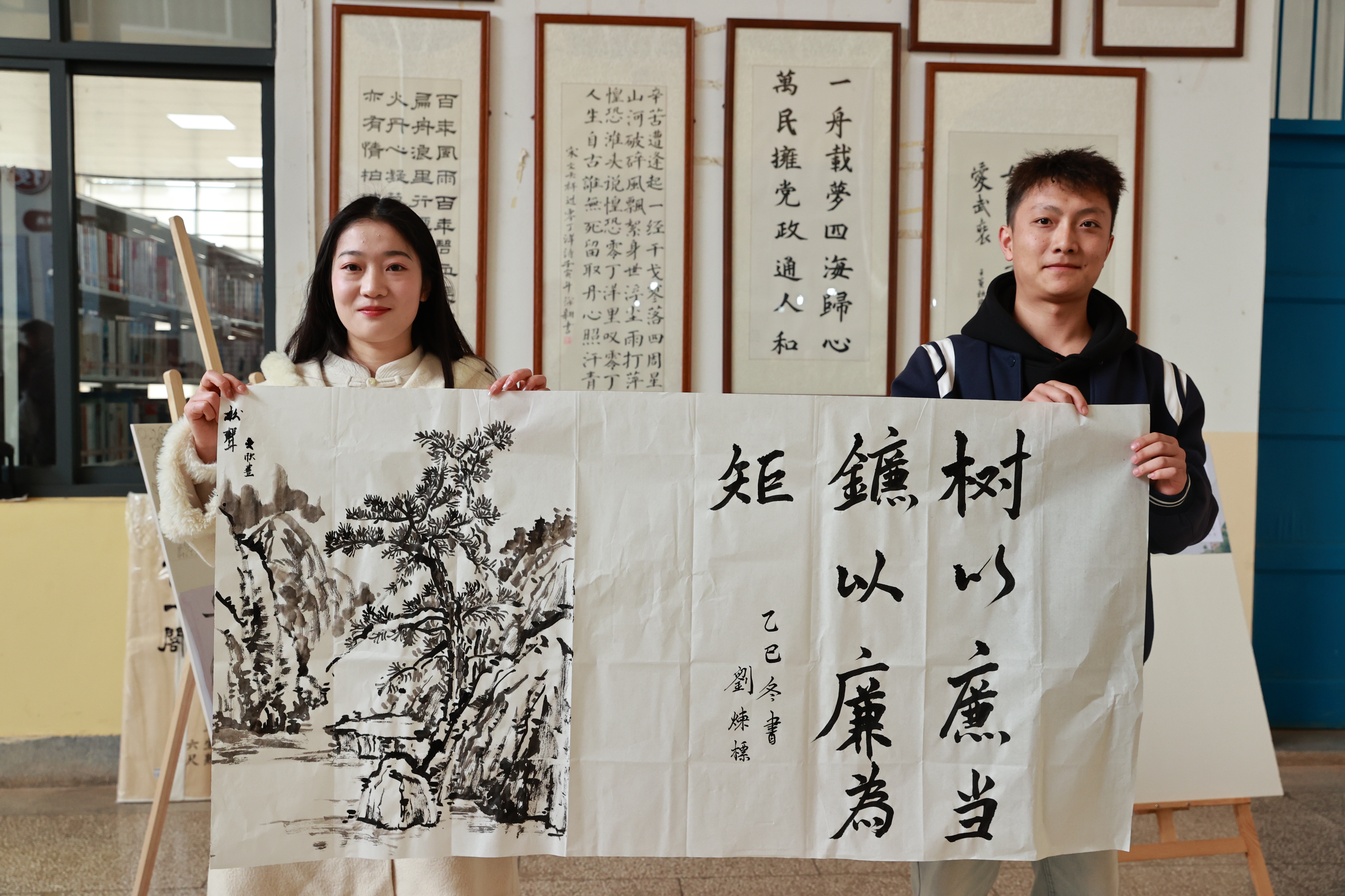 12月24日下午,廉洁文化主题展览在小哨校区图书馆正式开展,成为系列活动的亮点环节。展览现场设置主题摄影展区、绘画展区、书法展区,并特别开设现场书法创作互动环节。师生们有序参观,认真欣赏每一件作品,在笔墨丹青与光影瞬间中感受廉洁文化的深厚内涵与时代要求。