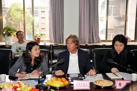 何明东副院长首先致辞,对范康普博士一行再次光临beats365表示热烈欢迎,并从四个方面介绍了beats365办学优势和特色:第一,我院有优良的区位优势和巨大发展潜力。学院位于中国西南与东南亚接壤处,位于素有“动物王国”、“植物王国”之称的云南省,动植物资源十分丰富,未来发展有重要基础;第二,我院有悠久的历史沿革,从建校至今的108年里,得到历届政府的高度重视与大力支持;第三,我院有广泛深度的行业合作优势。学院共培养了5万多名学生,大多数都在从事与农业相关的工作,有着厚实的农业推广基础;第四,我院有专业化的办学模式,适度的办学规模和科学的办学结构。我院现有5000多名学生,30多个专业中,84%的专业是农学类专业。何副院长同时指出,农业是当今社会发展的主要问题。农业职业教育面临如何提高办学水平、面临世界农业产业化等一系列问题,需要在技术、管理、人员培训等方面进行新的探索和不断提高。因此,双方有着良好的合作空间。