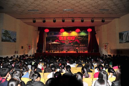 在济济一堂的礼堂和欢快的剧前音乐声中,崔书记宣布话剧演出暨第六届大学生艺术节开幕!学生工作处处长周诚致开幕辞。