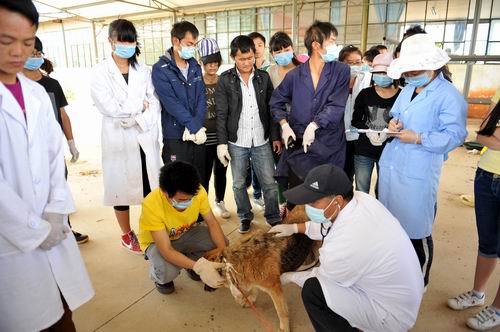 安置在金沙路未通车的露天路段,因缺乏专业技术人员救治护理,有的狗狗死亡、有的奄奄一息、少数狗狗已经逃跑,现场慌乱但不知下一步如何处置。畜牧兽医系的教师对现场情况进行观察后认为,如果任其在市区继续安置,可能引发严重的兽医公共安全隐患。狗的排泄物随意丢弃、污染环境,可能引发人畜共患疾病。爱心人士虽然有爱心,但因为缺乏相应的专业技术指导,心里非常着急。王家桥派出所维护秩序的民警,也建议学院能站出来帮一帮这些缺乏有效组织和统一行动的爱心人士,拿出一个整体解决当前困境的办法。学院畜牧兽医系出于解决兽医公共安全的社会责任感,从以人为本,兼顾动物福利的人文关怀和人道主义大局出发,秉承“牧者,爱人,爱动物;医者,仁心,济苍生”理念,根据畜牧兽医系现有的饲养管理和医疗设备等条件,承诺可接收100只狗狗进行救助。