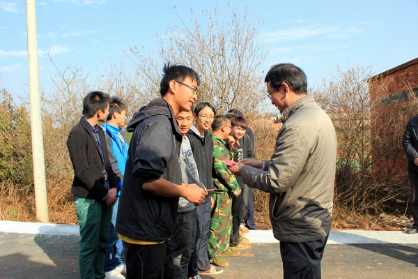下午3:30,李院长、俞副院长,以及党院办、学生工作处、小哨校区三个系的领导分别前往农牧场慰问留校在实训基地劳动的40多名大学生。李院长对三个系部的学生表达了诚挚的慰问,他说在马年春节来临之际,对留校坚守在基地劳动的同学们致以春节的慰问,给大家拜个早年!对留校学生看望慰问是学院多年来的传统,今年同样感谢各位同学牺牲假期为学院建设发展分忧解难;二是希望同学们在做好工作的同时要注意人生安全、财产安全、校园安全,注意劳逸结合,在春节期间组织一些文体活动,把春节过得丰富多彩;三是记得在除夕之夜向远在家乡的父母拜年,报一声平安!