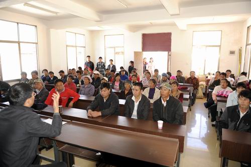 崔书记:自省委今年初确定我院的“四群教育”挂靠联系点为富民县时,学院党委高度重视,多次召开会议研究对富民县两个乡镇四个村委会的帮扶问题,并通过两次深入调研,制定了学院“四群教育”帮扶方案。主要是充分利用我院科研培训的智力优势,为当地农民进行科技培训、技术咨询和指导。截止到目前,学院为富民县农业局举办了一期近100人的农技人员“粮食高产创建培训班”;学院四位厅级领导挂靠的重点联系农户,在收完小春播种大春作物的五月底,及时为每一农户送去了价值5000余元的高效化肥,为两家农户送去了学院培育的6只优良种山羊,切实帮助他们增产增收,脱贫致富。现在有即将开班的14个“农民科技培训班”。