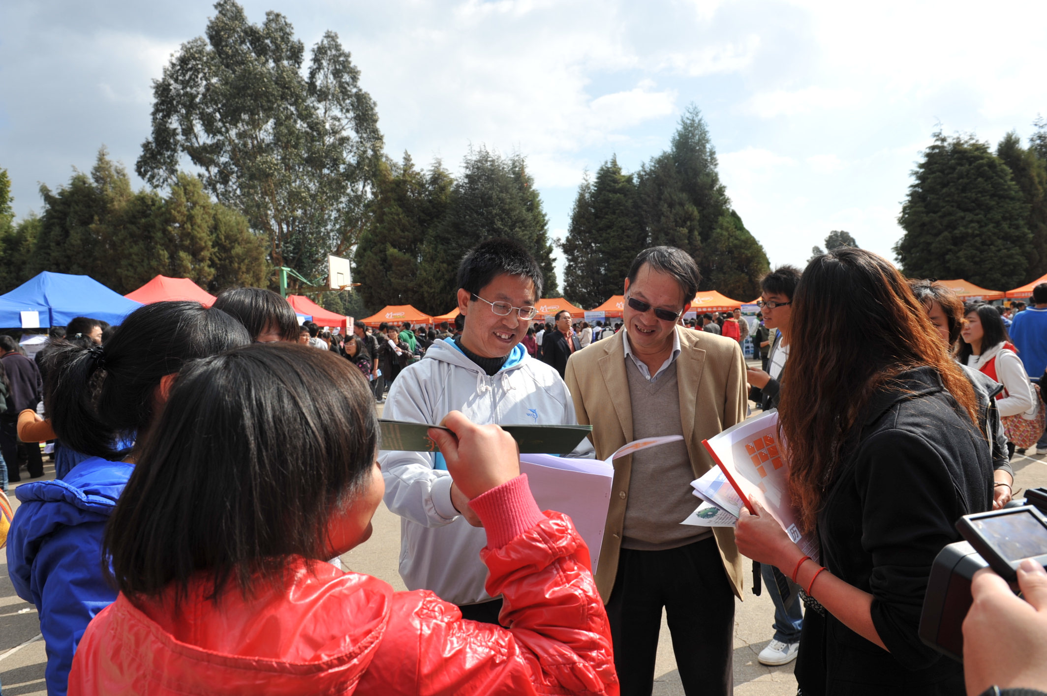 党委书记崔金赋在招聘会现场与毕业生交谈
