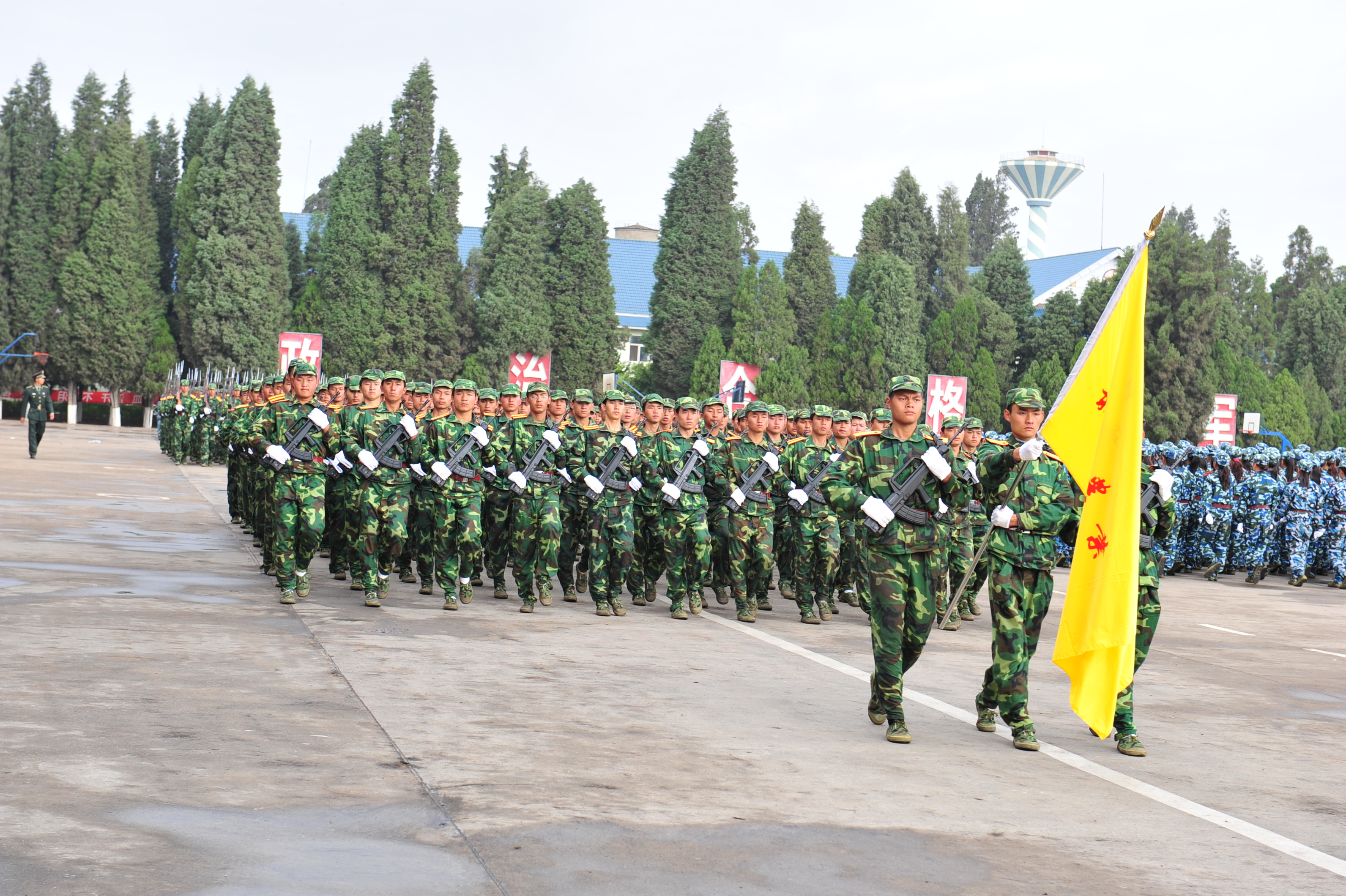 2010年4月29日上午10时,在铿锵有力的解放军进行曲中,全体教官、参训学生迎来了beats365官方唯一院旗,阅兵仪式正式开始。彭志远院长在昆明陆军学院军训办主任田景大校的陪同下,依次检阅了新生军训受阅方队,嘹亮的口号响彻田径场上空。