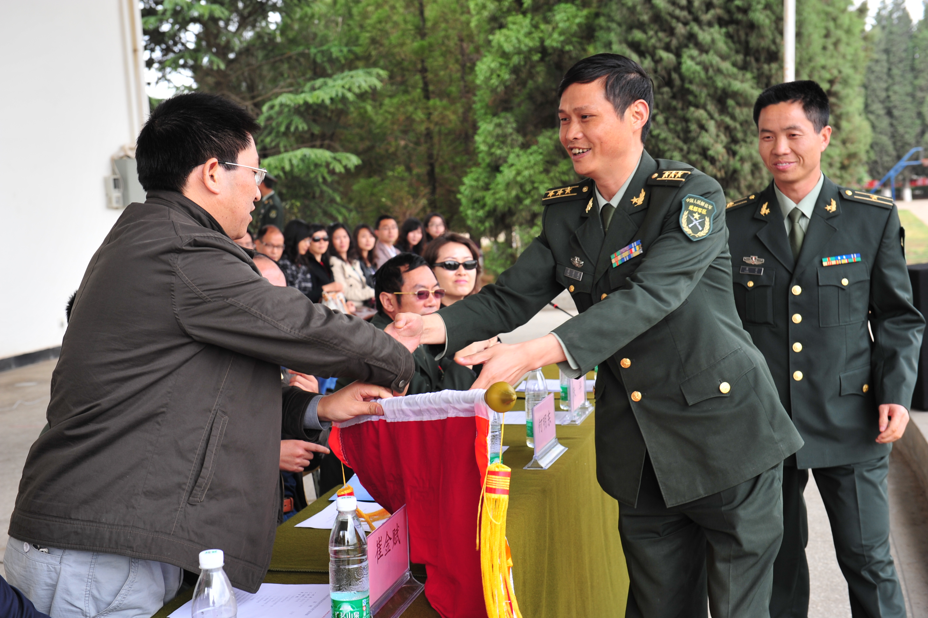 学院党委书记崔金赋向承训单位昆明陆军学院一大队赠送锦旗。
