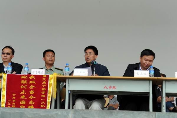 随后,崔书记作了重要讲话。他说:历时15天的2012级学生军训工作今天胜利结束了。我代表学院党委向承担本次军训工作的昆明民族干部培训学院领导和官兵致以崇高的敬意!向参与组织这次军训的学院各部门、各系的领导、辅导员和带队老师表示亲切的慰问!向胜利完成各项军训任务的2012级全体同学表示热烈的祝贺!崔书记指出,通过军训,同学们学习了军事知识,掌握了军事技能,增强了国防意识,磨练了意志,增强了体质;懂得了如何面对困难,克服困难,如何用坚韧不拔的意志来支配自己的行动,并朝着既定目标不懈努力。崔书记要求同学们,军训虽然结束了,不能把它当作一个终结,而应该当作一个新的起点,要继续发扬军训中养成的优良作风和艰苦奋斗、吃苦耐劳的革命精神,大力弘扬“耕道、养德、理想、开拓”的校训精神,刻苦学习政治理论和科学文化知识,不断完善知识结构,提高自己的综合素养,尤其要注重实践能力和创新精神的培养,争做中国特色社会主义事业的合格建设者和可靠接班人。