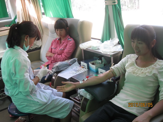 2012年6月5日至6日由院团委主办,院学生会、院青年志愿者协会承办的无偿献血活动在学院两校区举行,我院共有200名学生积极参加献血,其中茭菱校区96人,小哨校区104人。