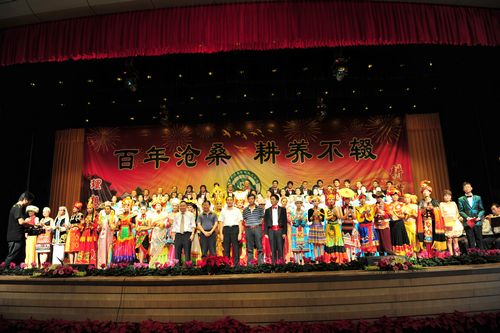 学院党委书记崔金赋同志代表学院致辞隆重庆祝学院成立106周年,欢迎农业厅厅长张玉明、副厅长孙海清及省委宣传部、省政府、省教育厅、临沧师专、丽江师专等部门和单位的领导和嘉宾,新闻界的朋友莅临学院指导!孙海清副厅长代表省农业厅致辞表示祝贺;学院老领导、原云南省农业学校校长李铸声为演出题词并发表热情洋溢的讲话;学院93岁的老教师孙奎钺;学院校友、全国优秀宣传干部郑垧靖同志的妻子杨翠芝;红河州农业局等单位纷纷发来贺信,祝贺学院建校106周年!