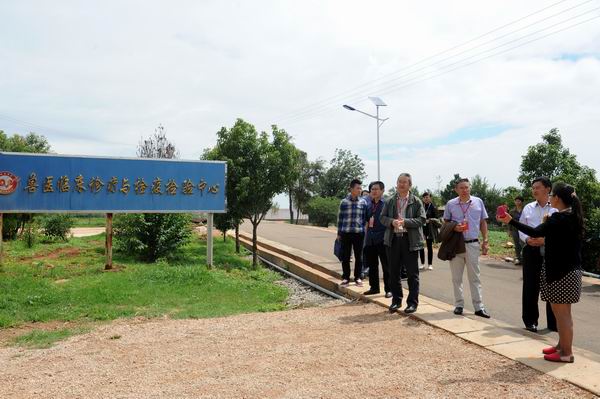 专家组一行沿花庄河上农牧场实训基地,先后察看了园林园艺学院的园林实训基地育苗场、果树实训基地、蔬菜实训基地、园艺花卉实训基地;察看了畜牧兽医学院的草地牲畜养殖基地、兔、鸡实训基地、水禽实训基地、兽医疾病检测防疫中心、生猪宰杀点、滇陆猪扩繁场;考察了农学院的中草药实训基地、油菜育种基地、玉米育种基地、水产养殖基地等。