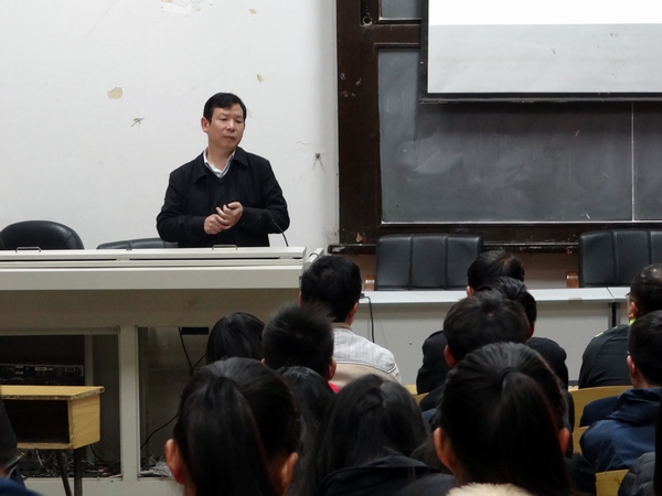 11月28日下午,经济管理学院计算机基础教研室在茭菱校区阶梯教室举办了《高校信息安全建设》的专题讲座。本次讲座由云南师范大学信息管理处处长梁立教授主讲,经济管理学院计算机专业的师生聆听了讲座。