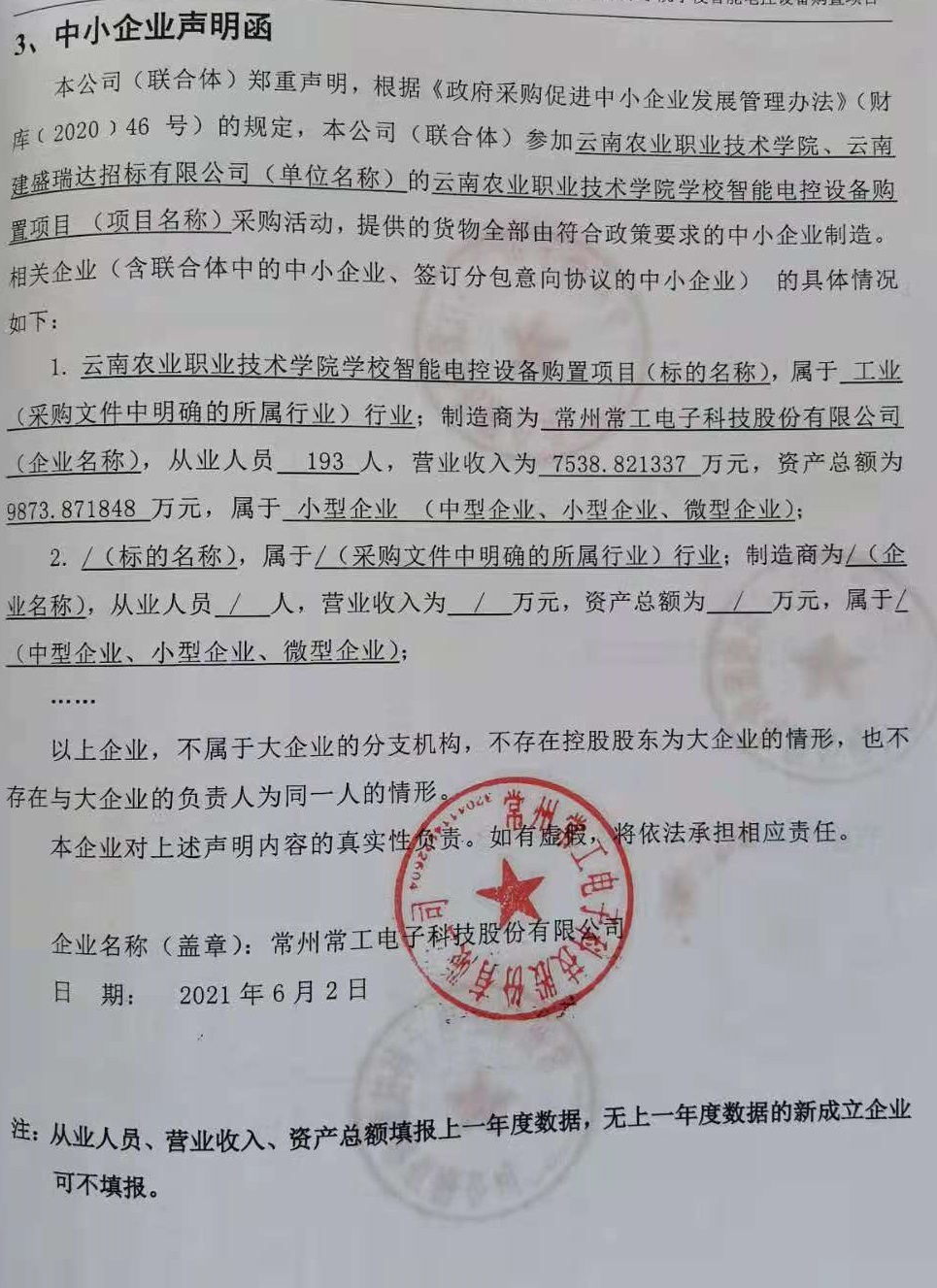供应商名称:常州常工电子科技股份有限公司